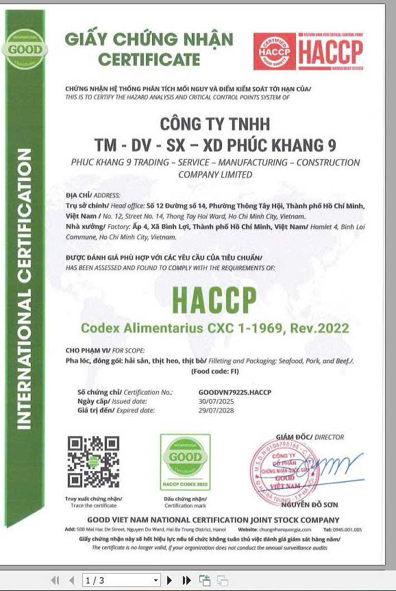 Công ty Phúc Khang 9 – đơn vị tiên phong đầy đủ các tiêu chí sạch hàm lượng, không tanh hôi, các sản phẩm thủy hải sản tự nhiên. Với tiêu chí mang đến sản phẩm sạch trong từng món ăn gia đình người Việt.